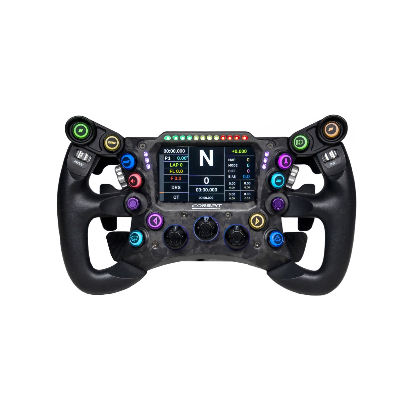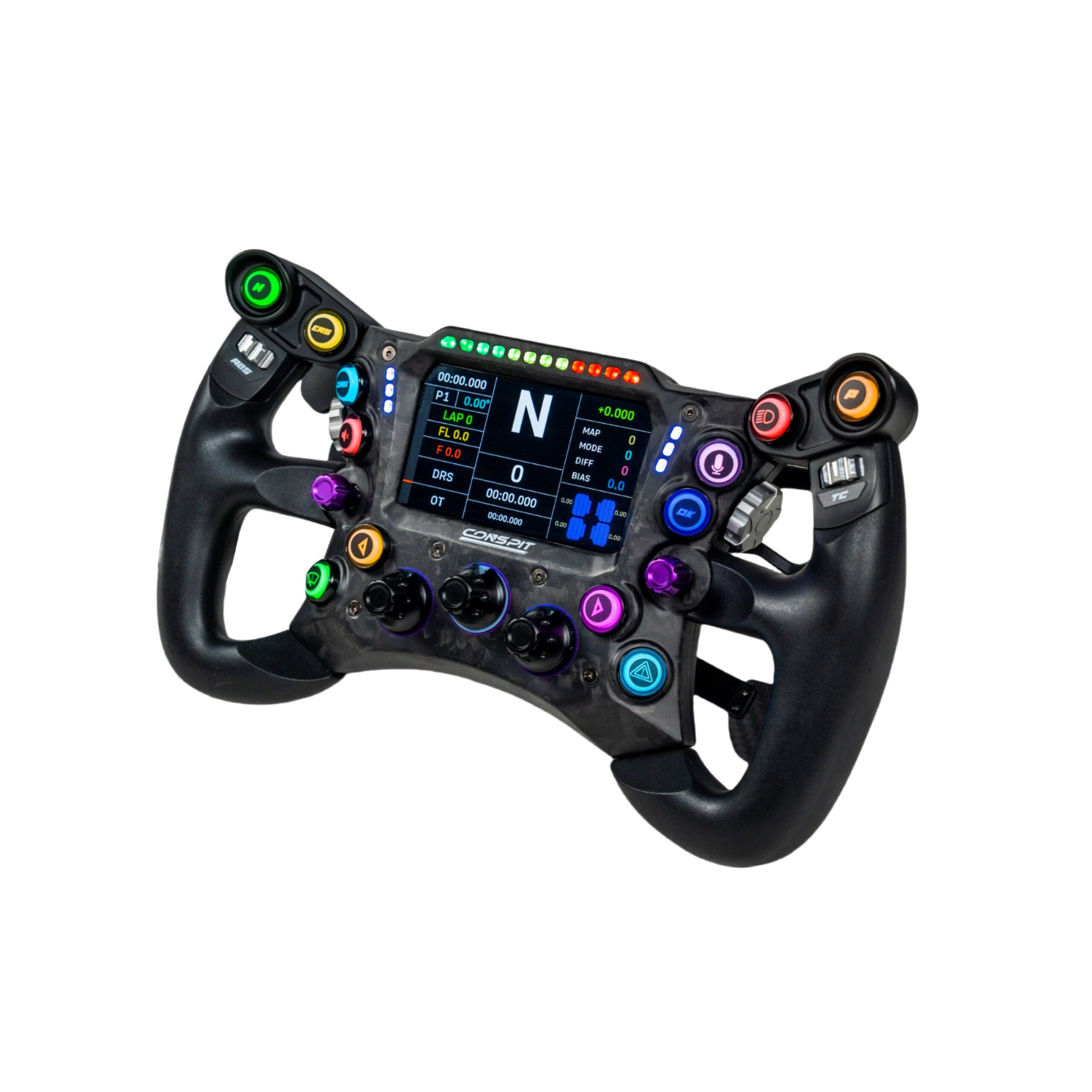 The 290GP employs modular self-contained buttons with localized rigidity and tactile consistency, paired with precision-tuned actuation force/travel for balanced feedback. SimHub-ready RGB lighting dynamically visualizes telemetry data, while CONSPIT Link 2.0 enables granular LED customization.