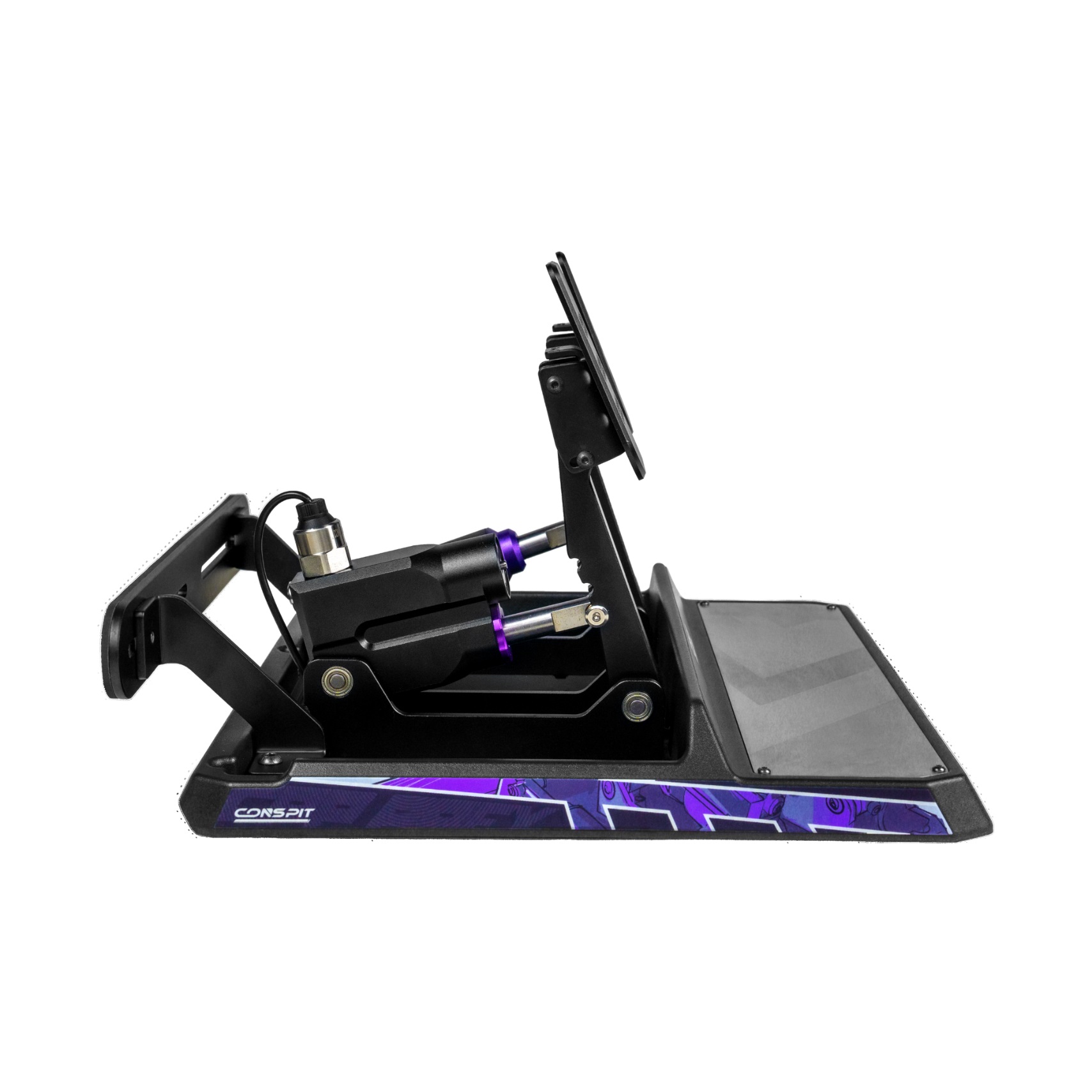 – 5mm Laser-Cut Steel Chassis: High strength for long-term durability – Damped Sandwich Structure: Multi-layer design absorbs vibrations effectively – Brushed Stainless Heelrest: Wear-resistant, with laser-engraved CONSPIT silhouette – Adjustable Pedal Mounting: Recessed design allows customizable pedal spacing – Side-Mounted Ports: Easy access even after installation on the rig – Clean Cable Routing: Hidden internal wiring for a tidy, user-friendly setup